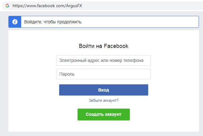 Старица мошеннической организации ArgusFX на сайте facebook com так же как и страница на linkedin com в закрытом доступе от незарегистрированных пользователей. Этот факт является довольно странным как для брокерской компании, которая называет себя надежной и обещает неплохую прибыль.
