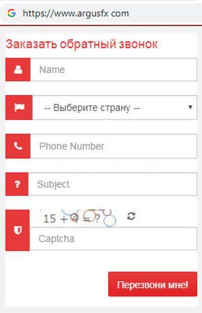 Скам-контора Аргус ФХ на своем официальном сайте ведет сбор данных о клиенте и предоставляет бланк под предлогом якобы возможности обратной связи на сайте, обещая после чего связаться с пользователем. Данный бланк для сбора данных о пользователях не такой уж и безобидный, как кажется на первый взгляд.