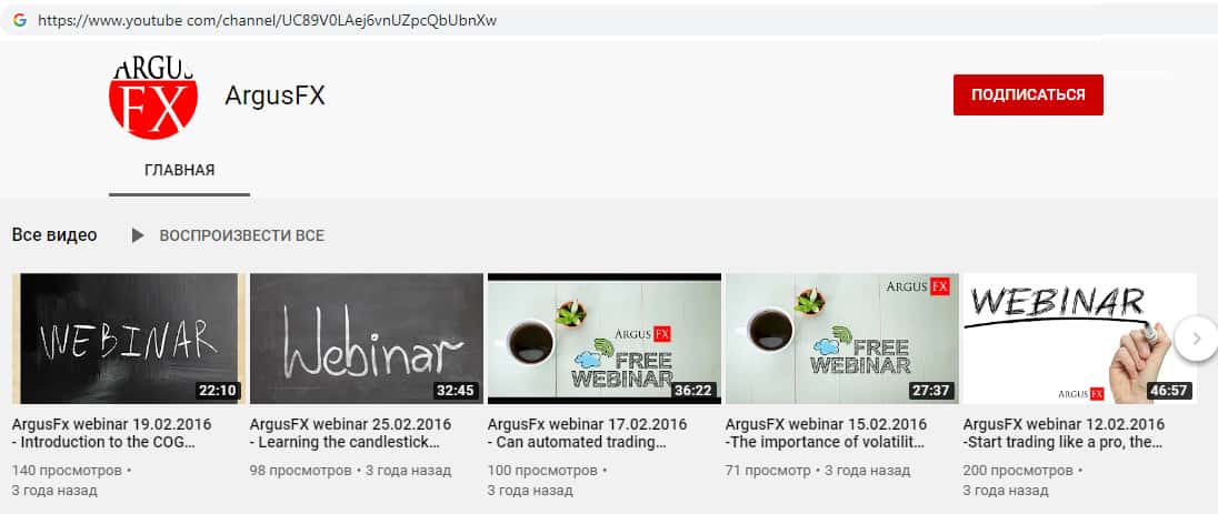 - Мошенники АргусФХ на своем сайте рекламируют свой канал на Ютуб