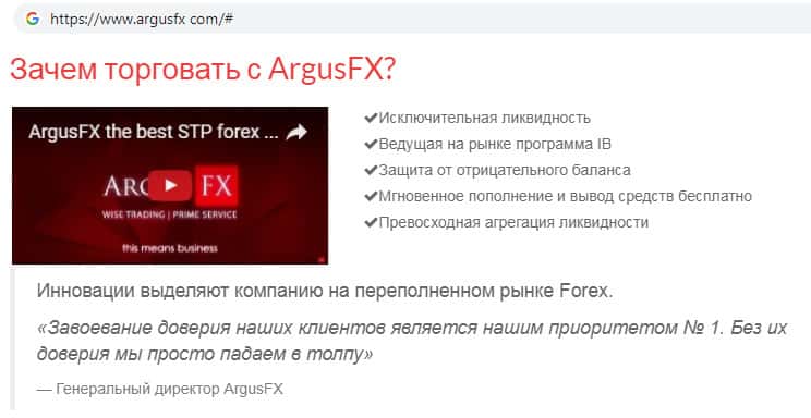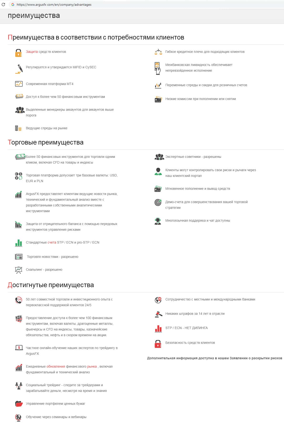 - Якобы преимущества псевдо-брокерской организации АргусФХ