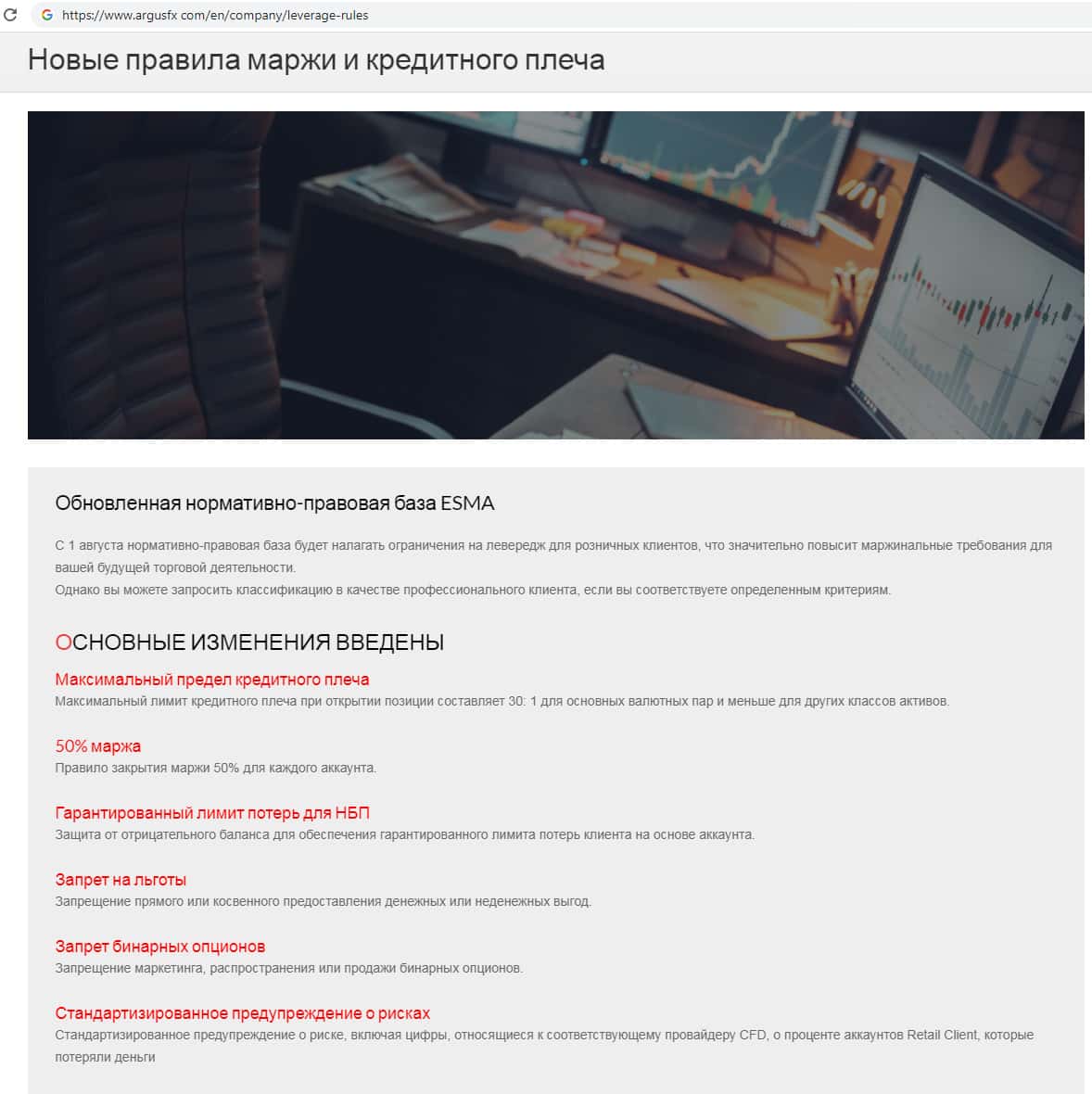 - Условия пользования сайтом жульнической конторы ArgusFX