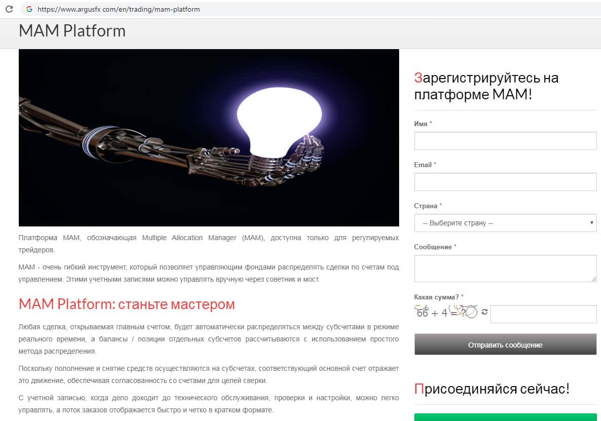 - Мошенники АргусФХ заманивают клиентов в свою брокерскую контору под предлогом возможности работы на их сайте