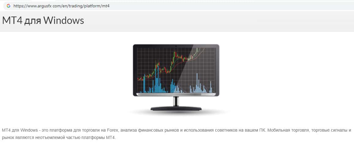 Торговая платформа на сайте жульнической конторы АргусФХ