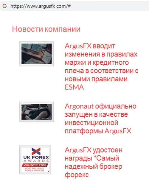 - Новости компании, которые мошенники ArgusFX сами о себе сочинили