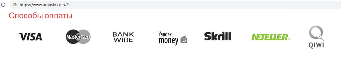 - Способы вывода денежных средств на сайте брокера-мошенника АргусФХ