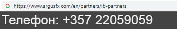 Жульническая организация ArgusFX, главный офис которой находится на Кипре, на своем официальном сайте указала номер контактного телефона своей организации, а так же указывает адрес электронной почты своей конторы, который указан ниже: