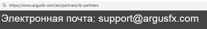 - адрес электронной почты брокерской конторы Аргус ФХ: support@argusfx com