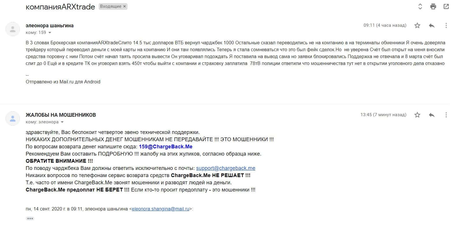 На почтовый адрес веб-площадки, разоблачающей деятельность лохотронов, пришла жалоба на мошенническую компанию АРХ Трейд, в которой кинули клиента на 14,5 тысяч $.