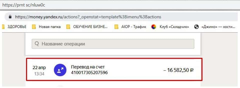 Далее предлагаю увидеть скрин платежной операции, подтверждающий перевод денег на счет сего онлайн-лохотрона.