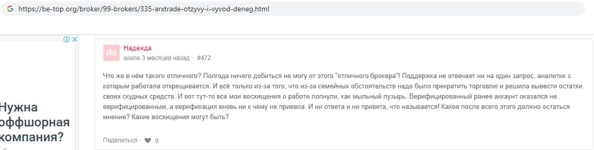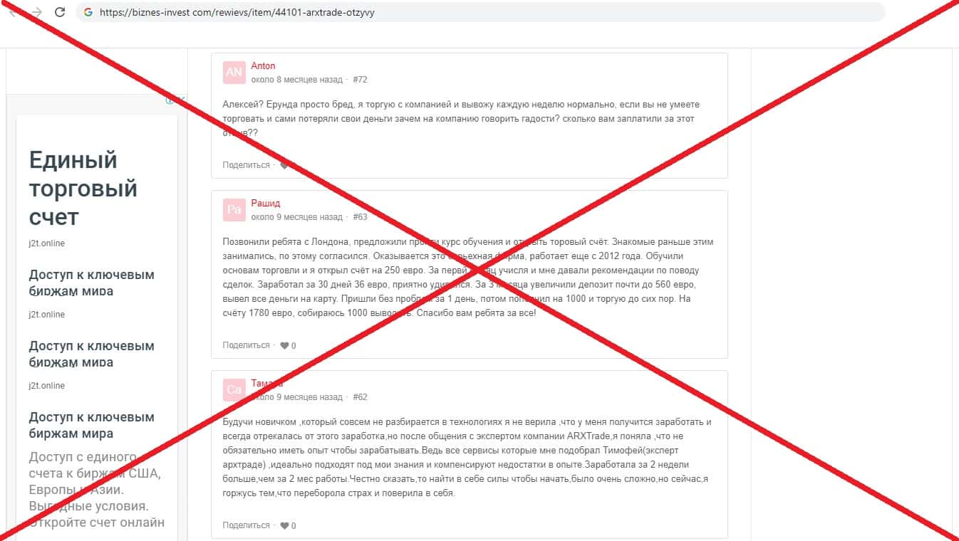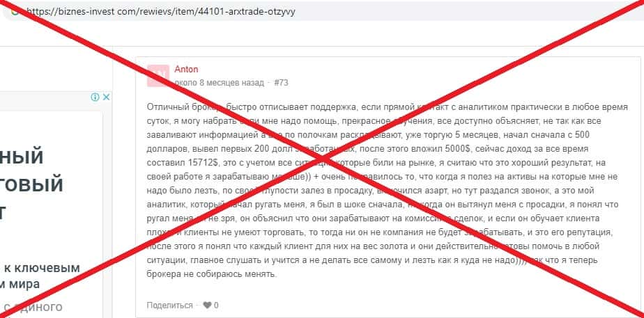 - Лживые отзывы о аферистах АРХ Трейд в сети