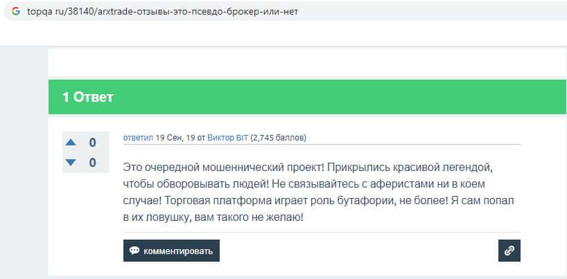 Обзор лохотрона АРХ Трейд другими интернет ресурсами
