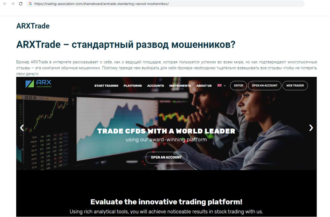 trading-association com - сайт обозревающий аферистов ARXTrade