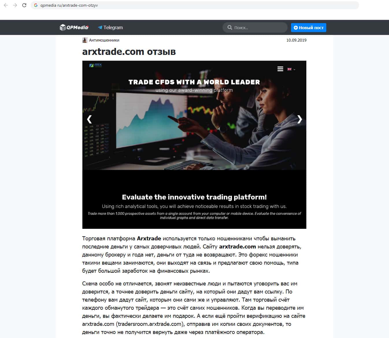 Вашему вниманию представлен перевод зарубежного трейдера о разводилах ARXTrade.