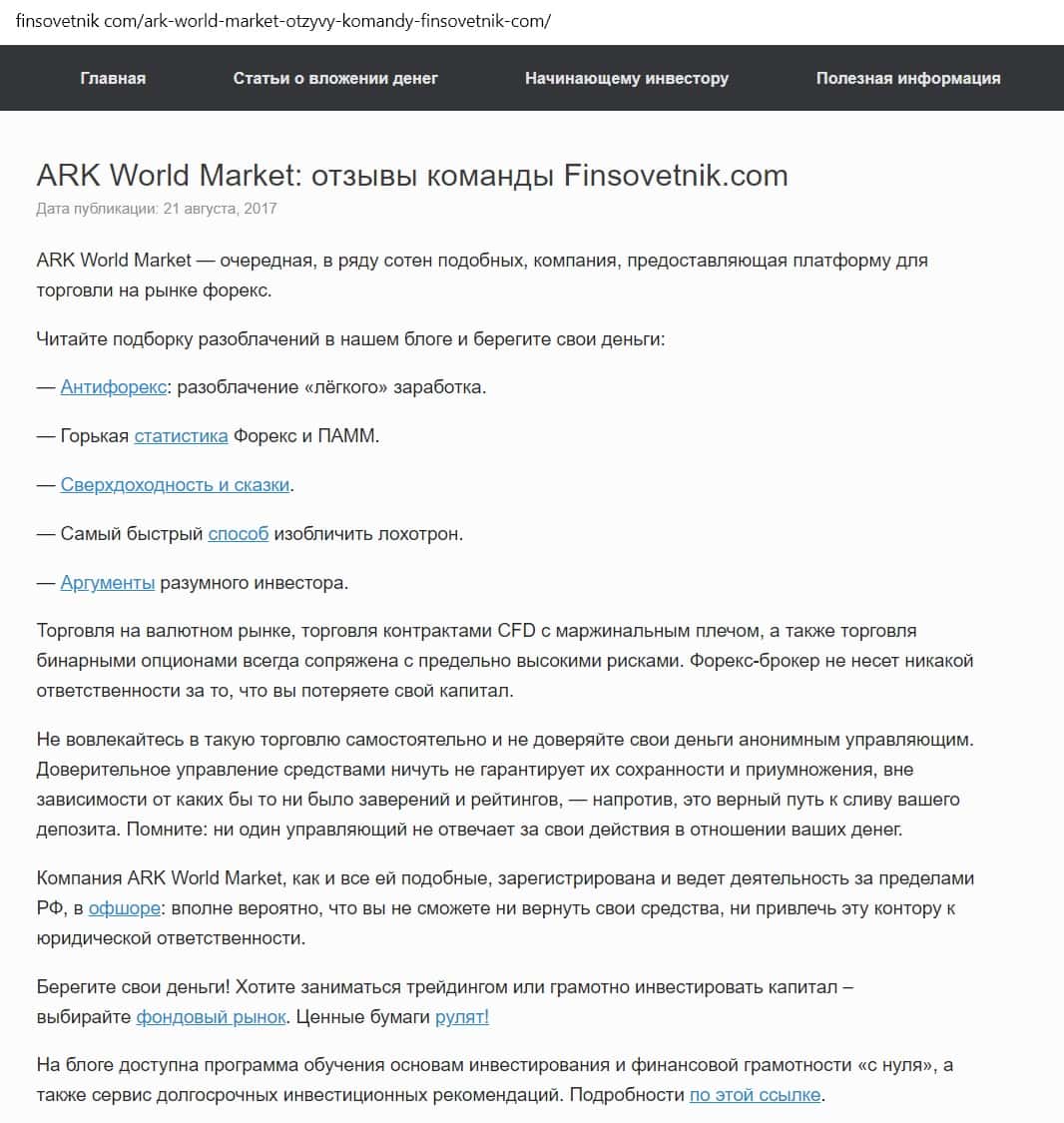 Сайт Финсоветник также предостерегает от того, чтобы вкладывать деньги в лохотрон Арк Форекс. Подозрения вызывает отсутствие лицензии и полная анонимность компании.