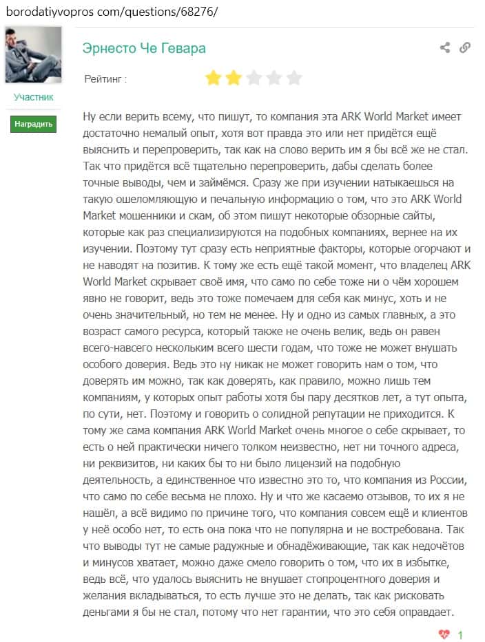 Другой пользователь пишет. что, если посмотреть внимательно, компания Арк Форекс имеет гораздо больше минусов, чем плюсов: анонимность, отсутствие лицензии и тому подобное.