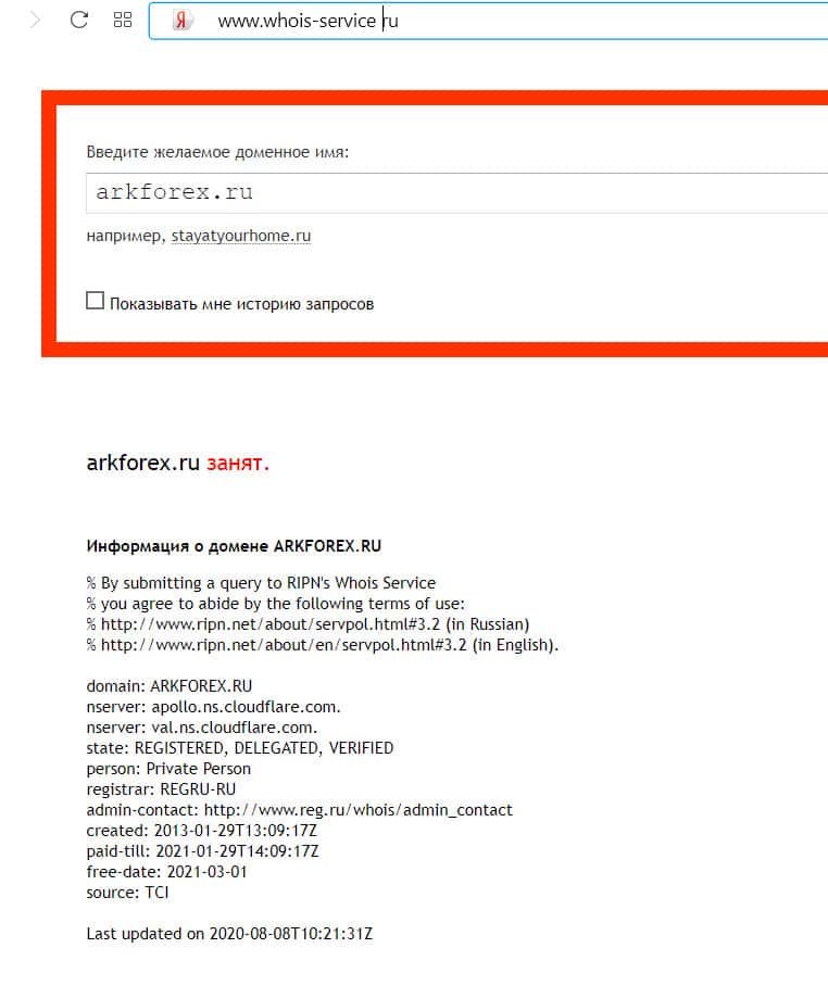 - Кому принадлежит доменное имя сайта arkforex ru?