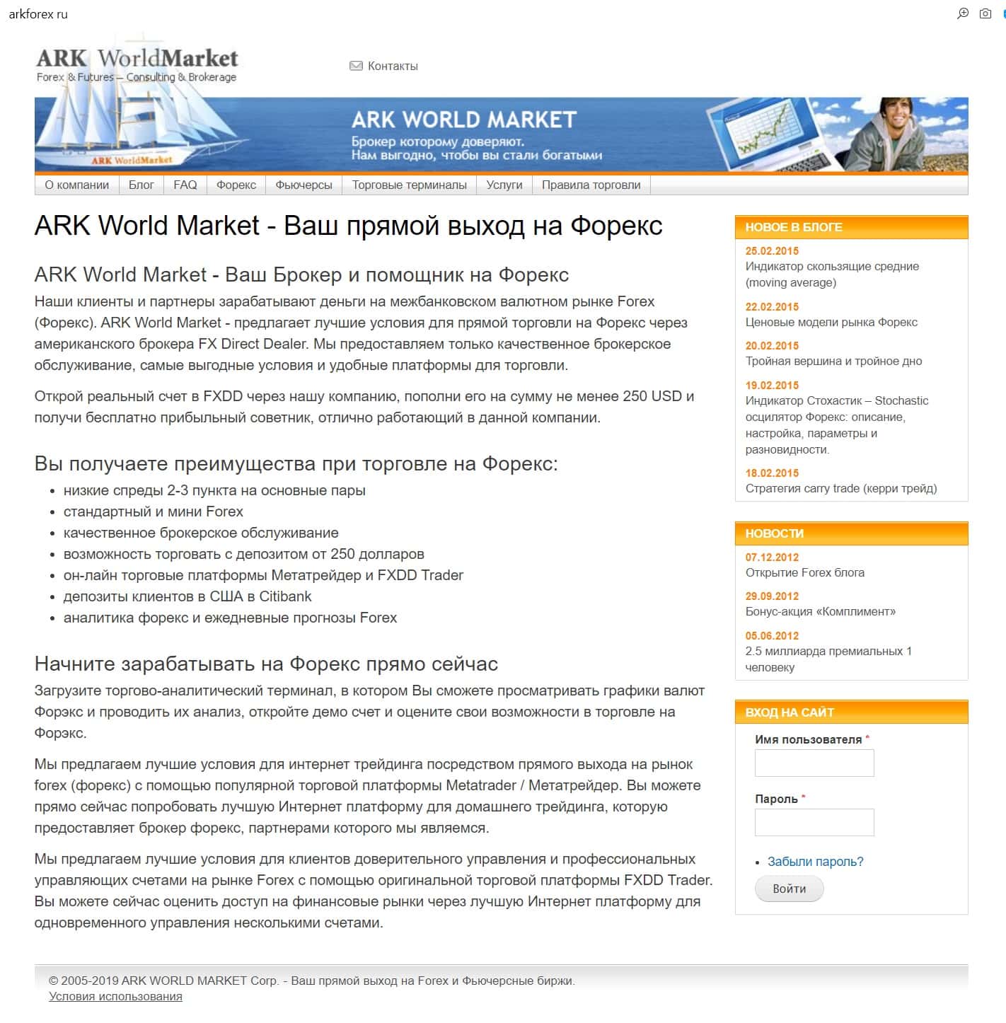 - Как выглядит главная страница сайта организации Арк Форекс?