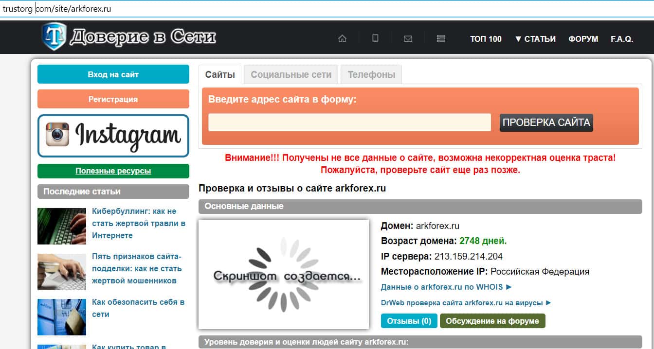 Обзоры с сайтов о мошеннике Арк Форекс, найденные в сети