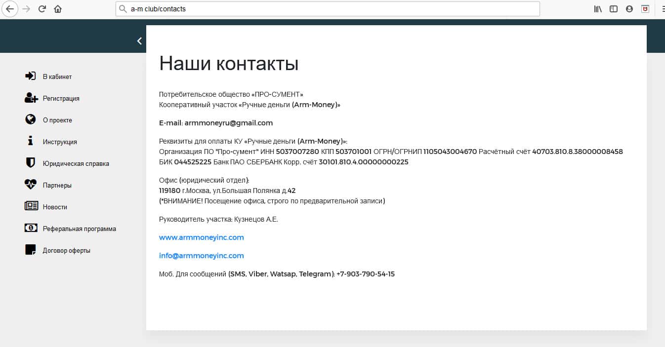 Связаться с жуликами Арм Мани вы можете одним из следующих способов: