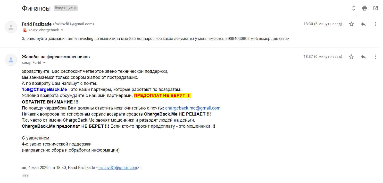 Письмо от пострадавшего клиента конторы Арма Инвестинг Связь с аферистами Арма Инвестинг