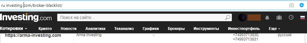 Имея такую короткую историю, портал Арма Инветинг создан в апреле 2019 года, уже успел прославится как жульнический проект. Сайт Инвестинг ком поместил его в чёрный список брокеров. Где содержаться торговые площадки, чья мошенническая деятельность была распознана и подтверждена.