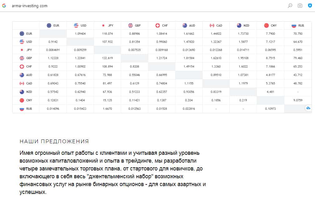 Таблица курсов валютных пар на Арма ИнвестингЗнакомство с тарифными планами Арма Инвестинг