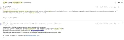 Теперь только стоит ждать последующих писем от этого пострадавшего клиента АроТрейд. Возможно к нам придут какие-нибудь важные доказательства по данной афере.