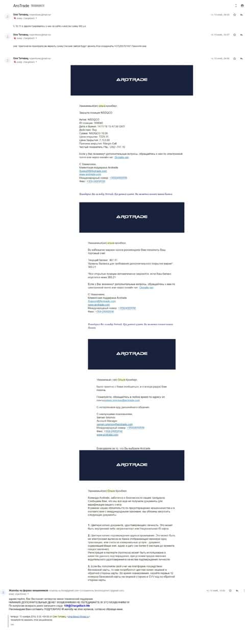 Аферисты Аро Трейд до последнего вытягивают деньги из клиента