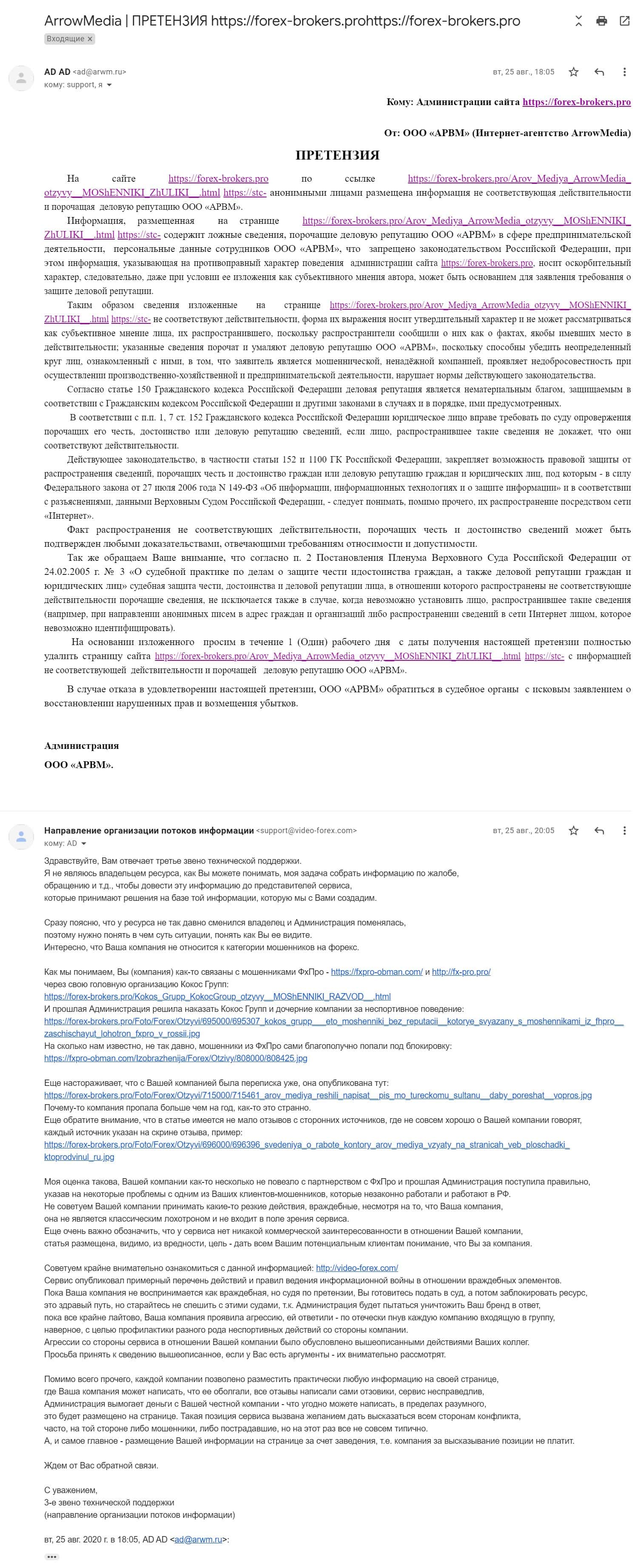 К конторам типа Аров Медиа и Кокос Групп хуже чем к мошенникам Макси Маркетс, поэтому решать вопросы можно с кем угодно и где угодно, но только не здесь. Переписку попытки порешать вопросы выкладываем ниже.