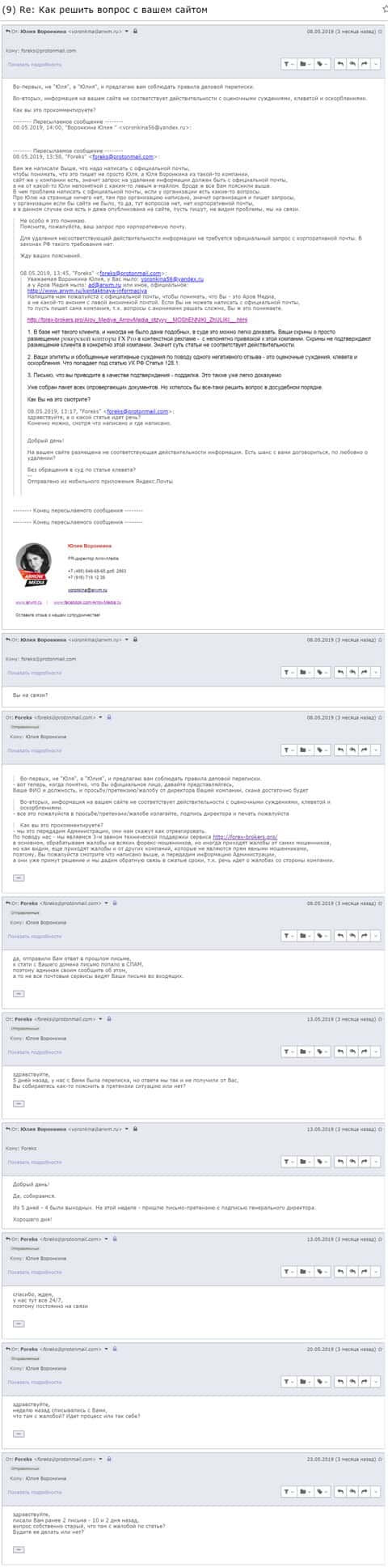 В результате, учитывая, что все так официально у Аров Медиа, то им посоветовали составить официальную жалобу, чтобы на нее как-то сервис мог среагировать, в итоге минуло не мало времени, как Аров Медиа и Воронкина Юлия с экранов радаров пропала и на связь не выходит - поведение странное у данной компании, не адекватное.