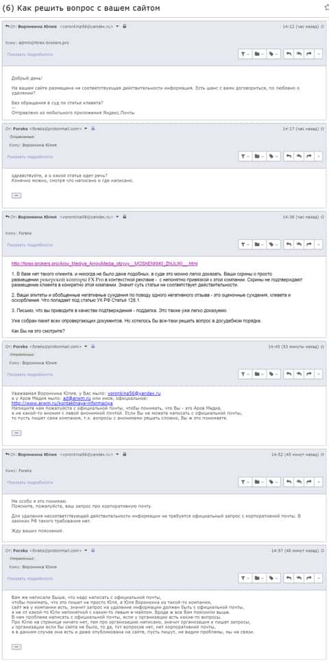 Пишет угрозы суда за кливету некая Воронкина Юлия с е-майла [email protected] из Аров МедияКак не странно, Воронкина Юлия оказалась действительно официальным представителем АровМедиа, и написала с официального е-майла: [email protected]