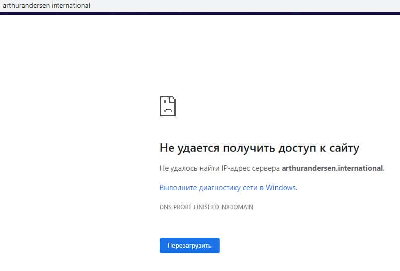 Ввиду своей многолетней, но не особо успешной деятельности аферисты Arthur Andersen оперативно слились и удалили свой подвальный сайт. Теперь от жулья Артур Андерсен ничего не осталось кроме кинутых и обманутых клиентов. На изображении, расположенном ниже, вы можете наглядно увидеть результат перехода на сайт шулеров Arthur Andersen.