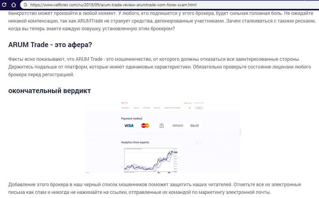- Статья о жуликах Арум Трейд с веб-площадки valforex com