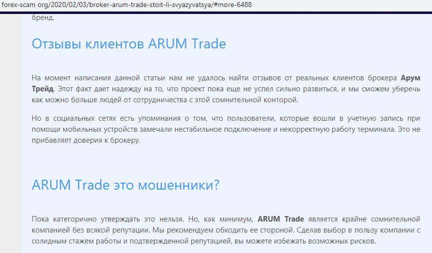 - Негативная статья о мошенниках Арум Трейд с веб-сайта forex-scam org