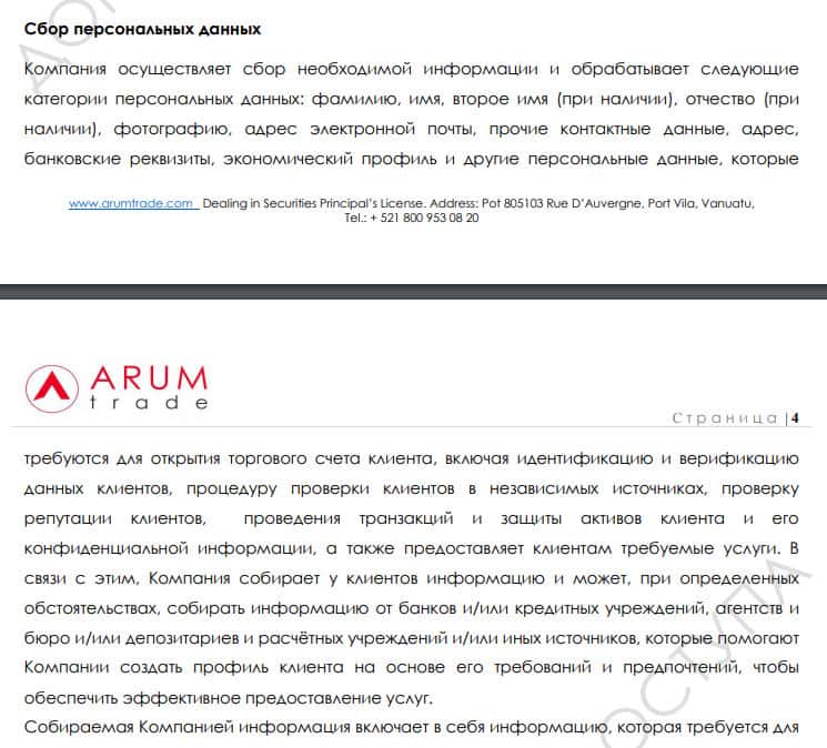 - Условия политики конфиденциальности жуликов Арум Трейд