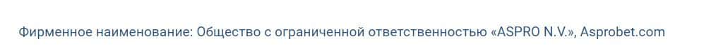 Юридическим лицом букмекера АС Про Бет является организация Общество с ограниченной ответственностью «ASPRO N.V.», о чем написано в разделе О нас.