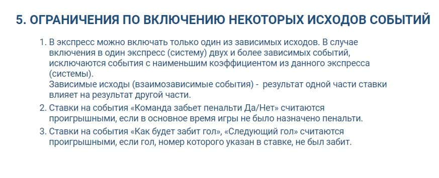 Пятый раздел правил букмекерской конторы АС Про Бет описывает, какие ограничения могут быть сделаны на некоторые спортивные события.