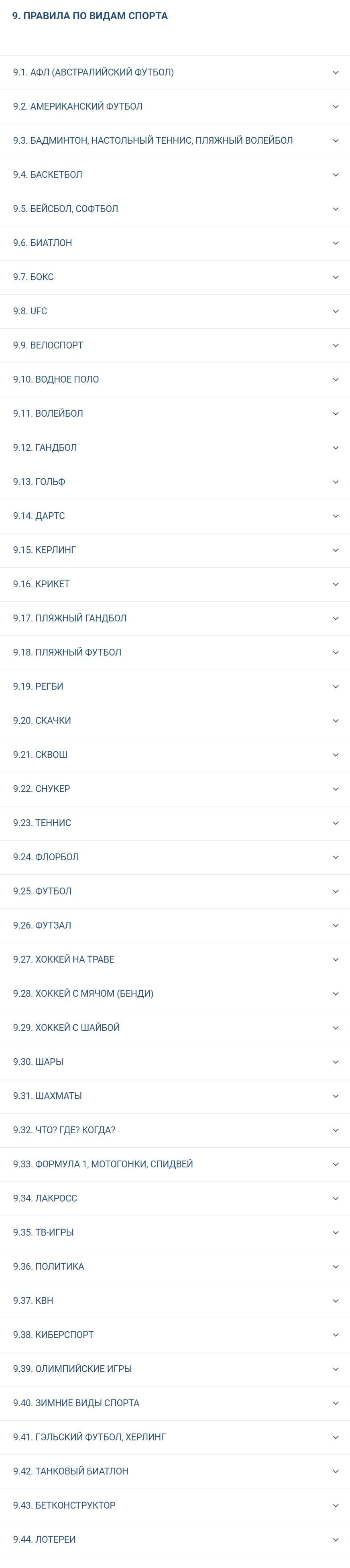 Девятый раздел правил букмекера АС Про Бет посвящен видам спорта, на которые можно делать ставки.