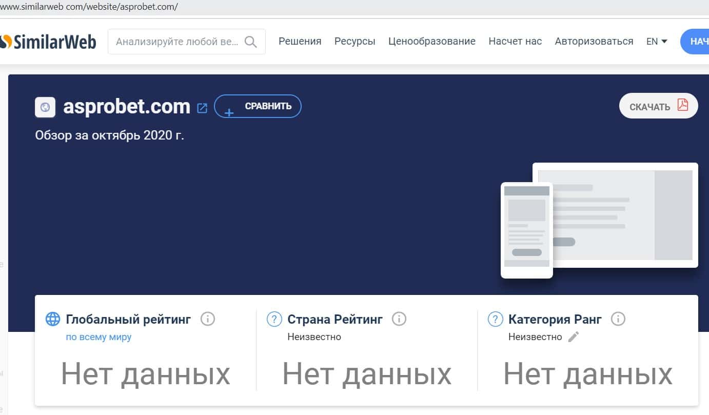 По информации, которую дает сервис Симиларвеб, данных о сайте asprobet com не имеется. Это указывает на то, что данная контора является мошеннической.