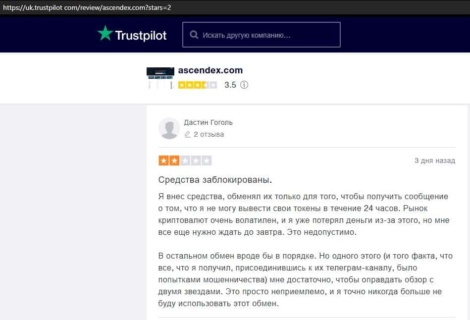 Автор данного отзыва рассказал, что мошенническая контора Асценд ЕХ заблокировала ему счет, где на данный момент лежит не мало криптовалюты на огромную сумму денег.