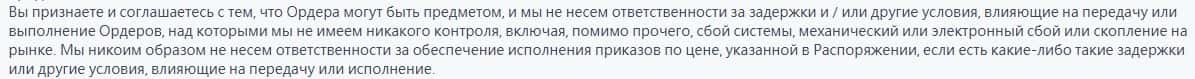 В данном соглашении описывается информация, что контора Асценд ЕХ не несет ответственности за задержки исполнения ордеров, что могут привести клиента к потере денег.