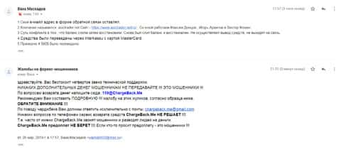 Примерно 4500 долларов пришлось помочь человеку вернуть компании ChargeBack.Me из форекс-конторы Асик Трейд. Шулера заманили его деньги, а потом слили депозит. После того как аферисты попросили вложить повторно для восстановления баланса, то жертва повелась. В итоге счет был заблокирован, а также никто из технической поддержки AsicTrader не выходил на связь.