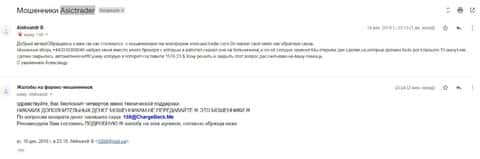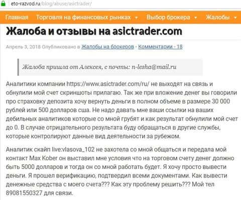 - жертва мошенничества, совершенного конторой AsicTrader пытается связаться с брокером, но ничего не выходит;