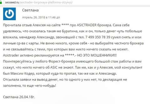- Аферист ДЦ AsicTrader втерся в доверие к клиентке и опрокинул ее