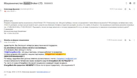 Жалоба на жульнический проект AsistBroker от очередного пострадавшего пользователя глобально сети