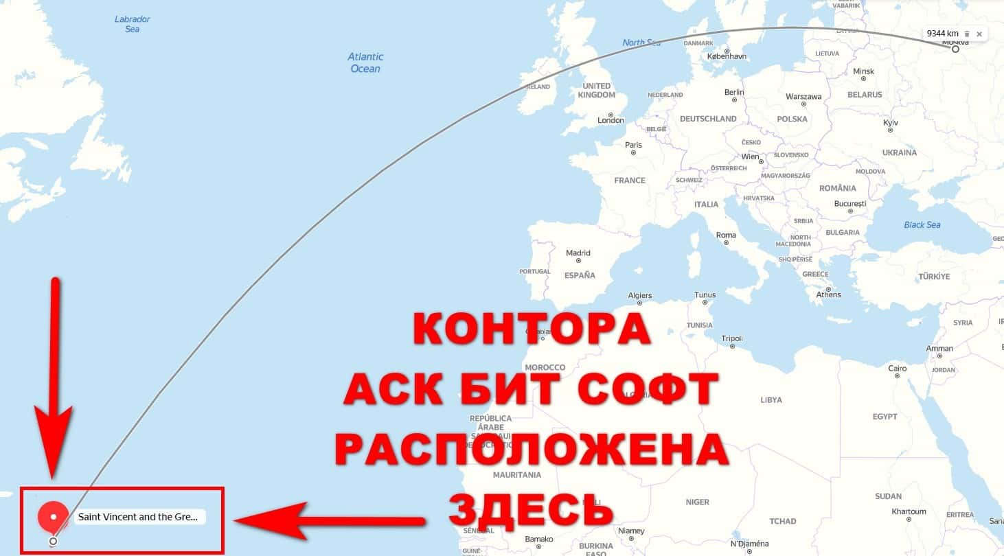 Лохотронская контора АСК Бит Софт разместилась на территории оффшорного государства Сент-Винсент и Гренадины, поэтому могут воровать у людей деньги и не нести ответственность.