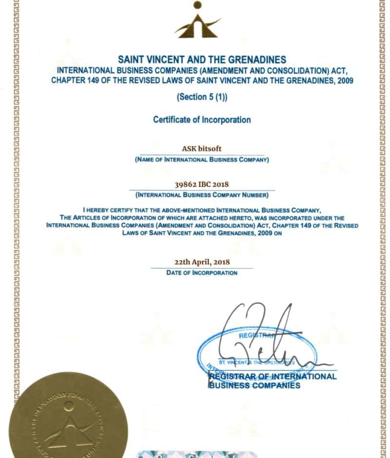 Лохотронская форекс-контора ASKBitSoft как оказалось принадлежит некой компании ASK bitsoft, которая зарегистрирована на оффшорных островах Сент-Винсент и Гренадины.