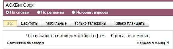 Другая версия русскоязычного бренда "АСКБитСофт" по запросам также не увенчалась успехом, так как шарлатаны вовсе не популярны в интернет-кругах.