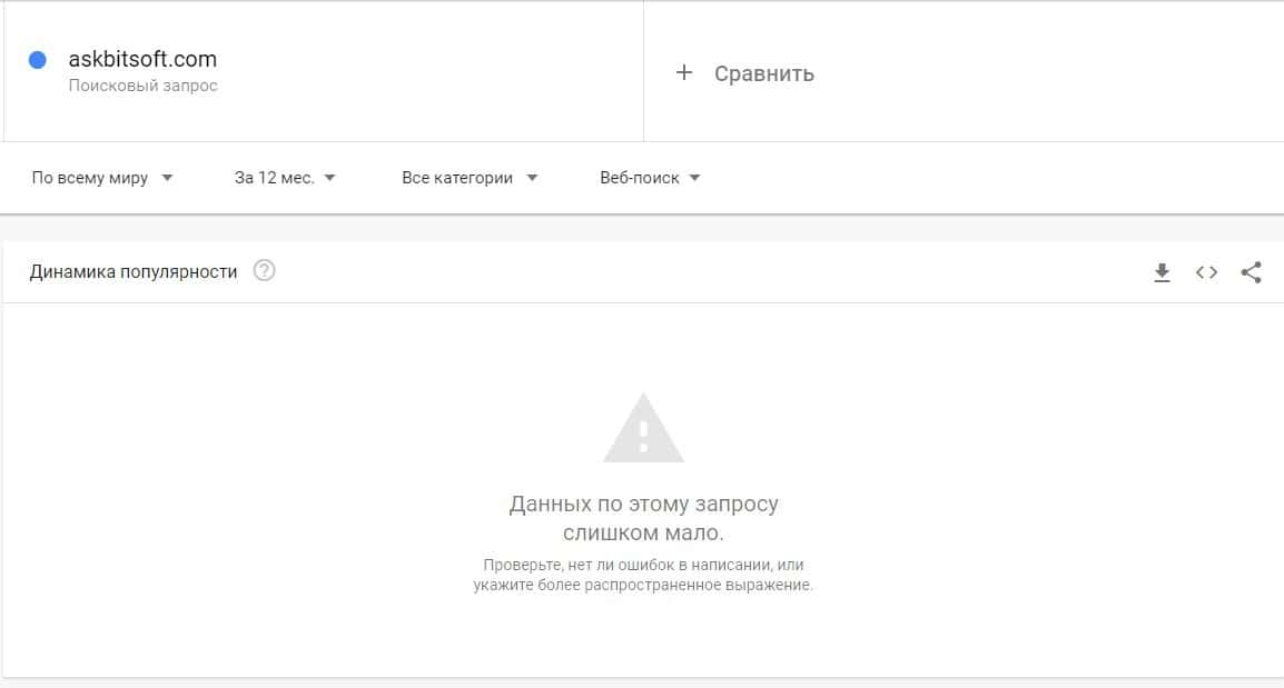 Ситуация и с брендом самого сайта "askbitsoft.com" немножко другая, так как он не находился в поиске Гугл вообще.