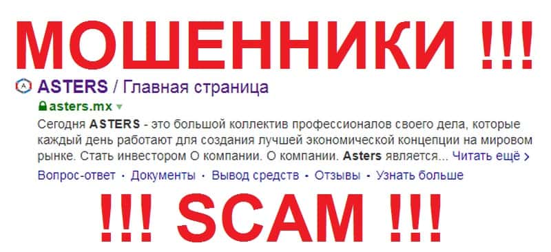 Шуллера Asters Mx что только ни готовы пообещать, чтобы привлечь как можно большее количество пользователей на свой сайт, рассказывая сказки о надежности их компании, сильно приукрашивая информацию о своей конторе. Это делается для того, чтобы втереться в доверие к людям и мотивировать их вкладывать свои денежные средства на жульнический сайт Астерс.